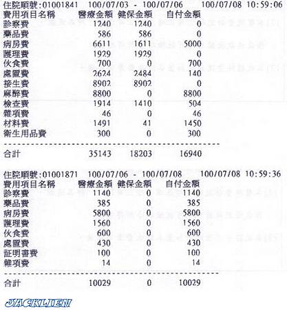 7/6-8媽咪住院費10,029B(主要是雙人房自付5,800)