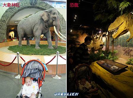 後來傑克又逛進恐龍區,裡面暗暗的,又有叫聲又噴氣的,還好小兔還蠻勇敢的!