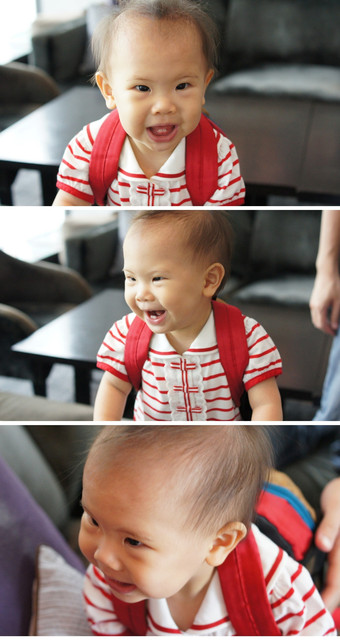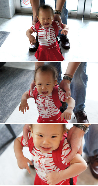 阿媽特別交代要背包包,蠻搭的~裡面裝了3片尿布而已!