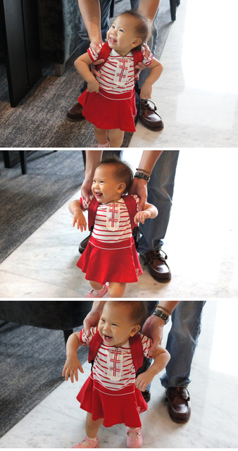 雖然抖的蠻厲害的,也不習慣穿鞋走路吧~但開心就好!