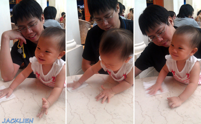 坐定位後,兔兔就一直要抽紙巾,我們以為她要玩就不想給…