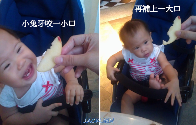 最後拿蘋果片給兔兔吃,一開始咬一小口超好笑…哈ㄇㄟ二齒!
