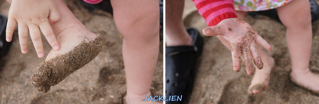 拿出事先準備好的玩沙玩具(婦幼展拿到的),一整個挖的很認真耶