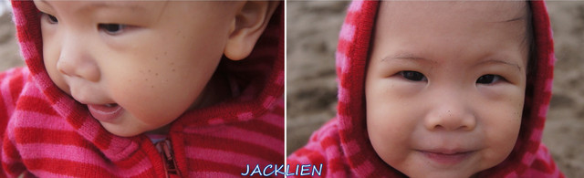 呵呵...其實是手上還有沙就去摸臉,嚇我一跳還是趕快擦掉吧!