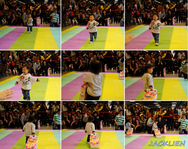一開始就用飛奔的方式向媽咪跑來,試圖想一次拿2包,卻因為太重中途放棄一包!