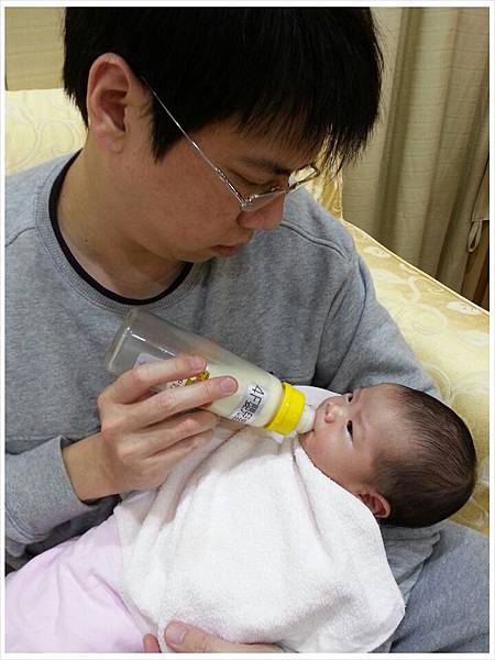 奶瓶很大喔…雙出生11天,四小時一餐要喝130ml囉~