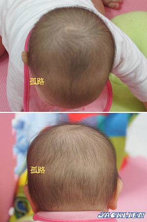 嬰兒後腦杓頭髮長的稀少,都集中在頭頂的地方,有明顯的一條界線,就是俗稱「生孤路」,