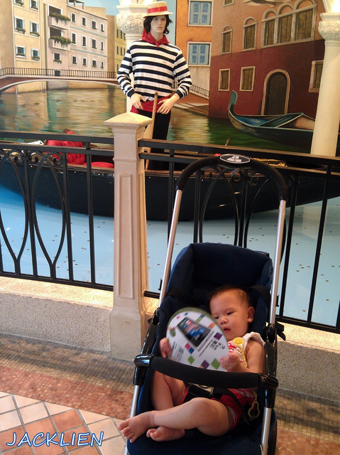 等候時就帶兔兔到旁邊跟貢多拉拍張照吧…雖然兔兔只顧著玩扇子…