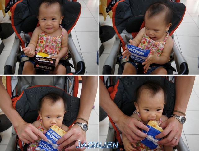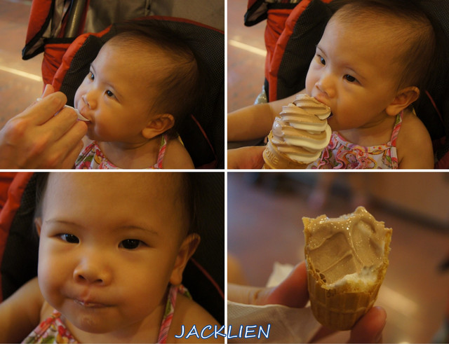 還是覺得天氣有些熱,我們跑回餐廳裡去吃義美雙淇淋